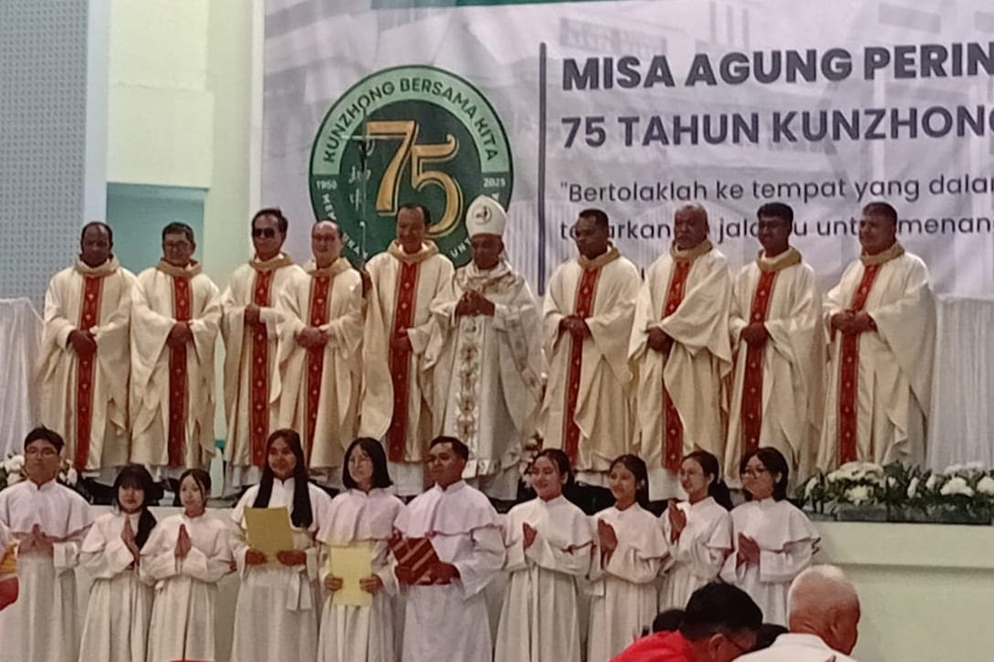 主徒会印尼坤甸中学为庆祝75周年校庆,于2025年10月份举行了一系列的校庆活动。 75周年校庆活动于10月15日﹙星期三﹚由主徒会加里曼丹教育基金会徐永发神父﹙Rev Lodewyik, CDD﹚,在圣伯多禄学校﹙坤中﹚庭院以敲锣的方式,象征性地拉开了序幕。