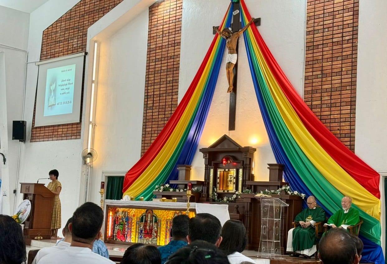 第二天是主日,我们到波德申圣母无染原罪堂参加主日感恩祭。圣母无染原罪堂隶属吉隆坡总教区的五间朝圣教堂之一。早上十时半的英淡双语弥撒由陈新伟神父主祭、黄进龙神父共祭。