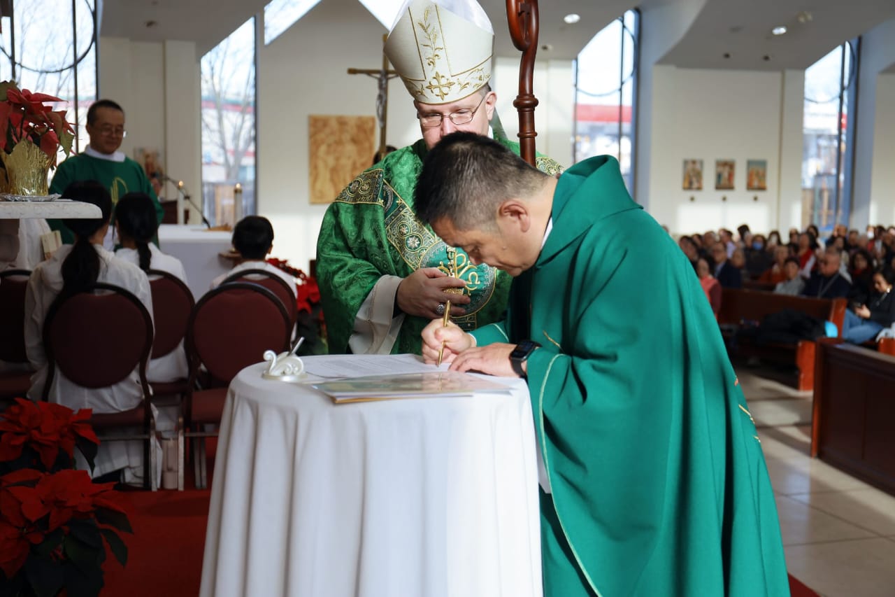﹙多伦多讯﹚2026年1月18日(星期日) 上午十时正,天主教多伦多总教区的西区主教卡米里﹙Bishop Ivan Camilleri﹚亲临密西沙加市救世主堂,主持新主任司铎的就职弥撒与典礼。在隆重庄严的礼仪中,主徒会会士罗秀彪神父就任为该堂的第三任主任司铎。