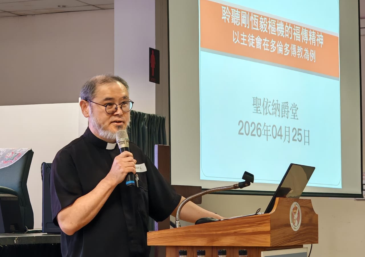 2026年4月25日,张少麟神父在马来西亚八打灵再也圣依纳爵堂举行的“主徒会2026年福传工作坊”中,为近百位会众主讲《聆听刚恒毅枢机的福传精神──以主徒会在多伦多传教为例》。其中,我对他叙述2007年主徒听命,单枪匹马到加拿大履新的经验比较好奇。